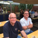Anschließend ging es dann bei nahezu perfektem Kirmeswetter wieder für einen kleinen Teil der Gruppe zurück auf die Rheinwiese. Hier blieben wir dann nach einem ausgedehnten Kirmesrundgang nur zu gerne bei Thomas Schneider und dem ein oder anderen Altbier hängen. Zwischenzeitlich kam auch Campino von den Toten Hosen am Schneider-Imbiss vorbei. Es stellte sich heraus, dass die Toten Hosen an diesem Abend ein Überraschungs-Konzert im Ürigen-Zelt auf dem Kirmesgelände geben würden.