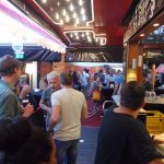 Da der erwartete Regen dann auch langsam Fahrt aufnahm, stellten wir uns unter der Rheinbrücke direkt an einem der Geländeausgänge unter, in der Hoffnung, dass das Unwetter relativ schnell durchgezogen ist. Leider war dem nicht so und wir warteten mit geschätzten weiteren 250 Kirmesbesuchern geduldig 90 Minuten in unserem provisorischen Schutzraum. Unerwartet bekamen wir dann aber von Thomas Schneider, der auf der Rheinkirmes einen Imbiss mit Biergarten betreibt, einen Shuttleservice in die Düsseldorfer Altstadt. Dort wurde erst einmal etwas für das leibliche Wohl getan.