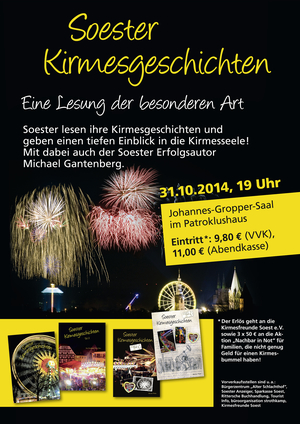 Am 31. Oktober werden um 19 Uhr im Johannes-Gropper-Saal des Patroklushauses rund 15 Soester ihre persönlichen Kirmesgeschichten erzählen. Die Idee zu dieser ganz besonderen Lesung hatte Uwe Schedlbauer. Er hat mittlerweile schon sein 4. Buch mit „Soester Kirmesgeschichten“ rausgebracht. „Warum daraus nicht mal eine Lesung machen?“. Ja, warum eigentlich nicht. Er sprach über diese Idee mit den Soester Kirmesfreunden, die sofort Feuer und Flamme waren.
