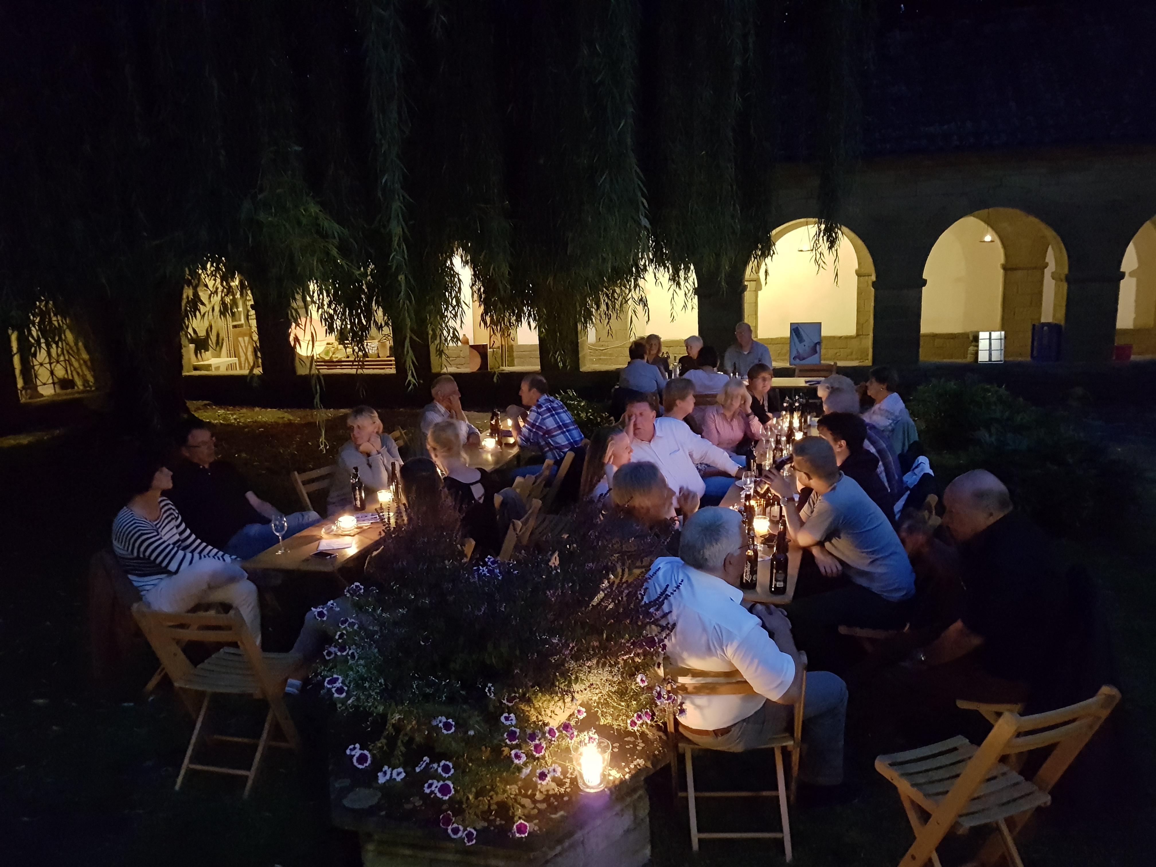 Bei Bier, Wein und natürlich leckerstem Grillgut saßen die kirmesbegeisterten Soester im Innenhof des Kreuzganges unter der Trauerweide bei Kerzenlicht und tollen Gesprächen.
